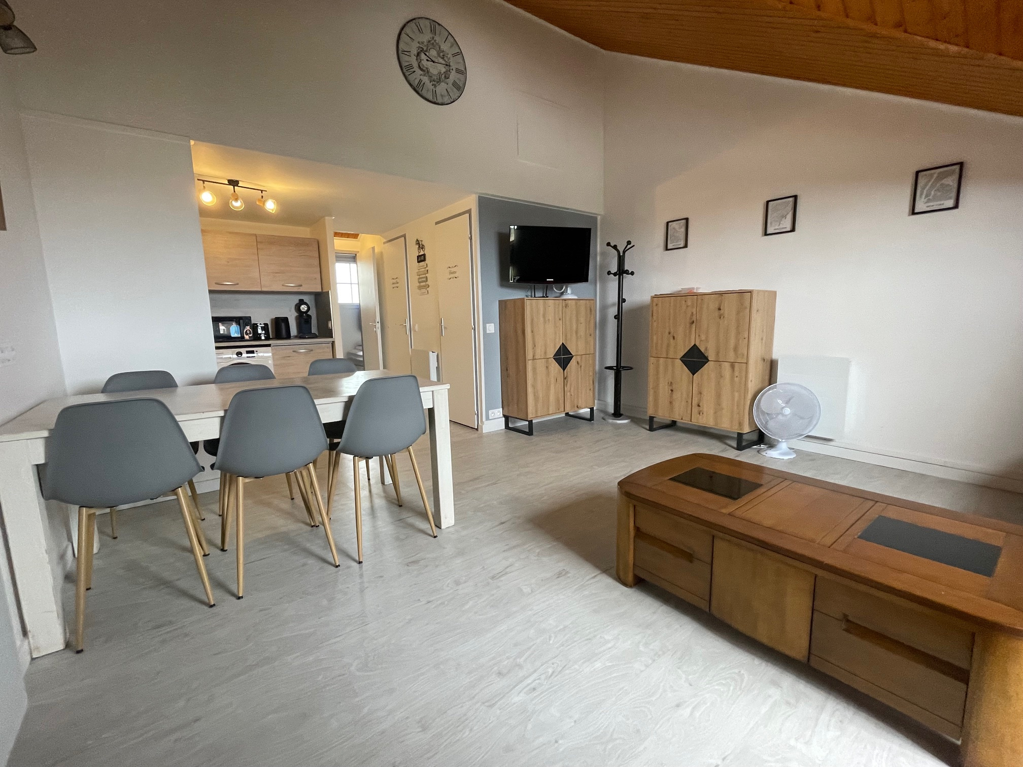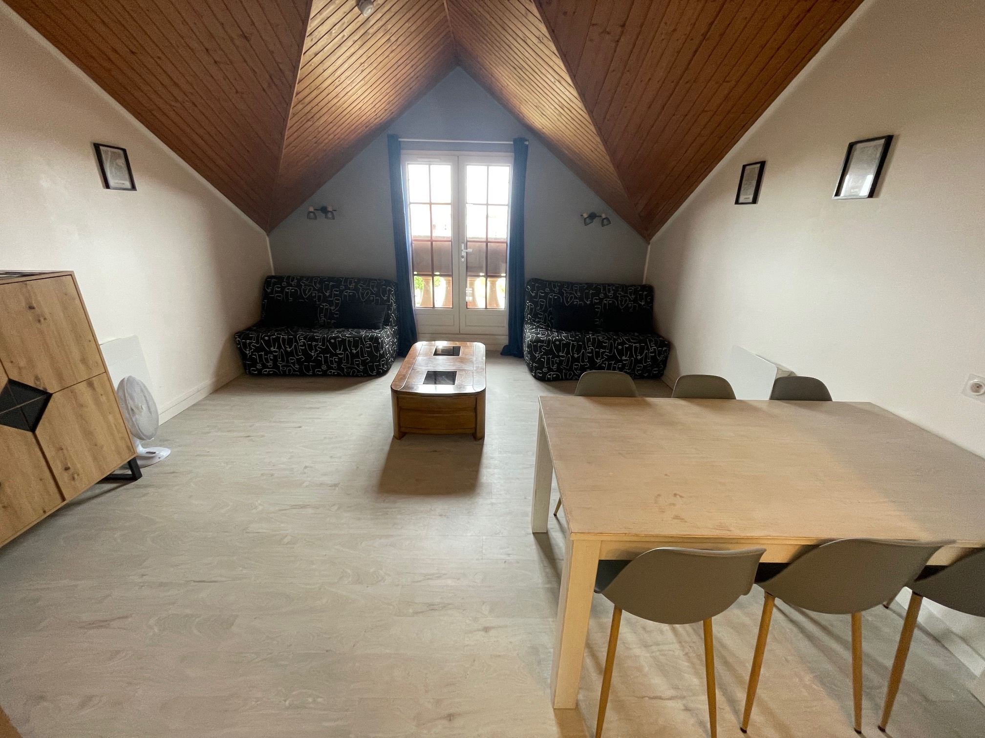Au coeur du village vacances, bel appartement en duplex rénové avec goût, comprenant : entrée avec placard, beau séjour avec cuisine moderne 100% équipée, une chambre, salle de douche et wc séparé. L’appartement a été entièrement refait avec matériaux et mobilier de qualité et est vendu meublé. L’ensemble situé au 2ème et 3ème étage avec vue sur le lac de Bourgenay. Belles prestations et beaux volumes. Proxmité plage du veillon, Port de Bourgenay et commerces de la Croisée.