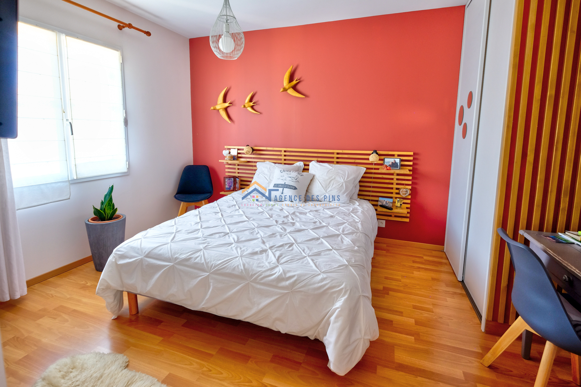 A vendre aux Sables d’Olonne, maison d’architecte de 6 pièces, située à pied des commerces, écoles et à proximité des plages. Cette villa de plain pied se compose d’un hall d’entrée, wc indépendant avec lave-mains, salon/séjour avec poêle à bois donnant sur terrasse avec pergola bioclimatique, cuisine aménagée et équipée, cellier ou buanderie (placard, évier), dégagement, 4 chambres, salle de bains (baignoire, douche, wc), garage + faux grenier aménagé, une douche avec wc, 2 chalets de jardin sur belle parcelle paysagée, constructible et piscinable. Côté transports, bus Oléane à 100 mètres et gare SNCF des Sables d’Olonne à moins de 10mns en voiture. Renseignements complémentaires en contactant l’agence des Pins au 02.51.23.48.10.