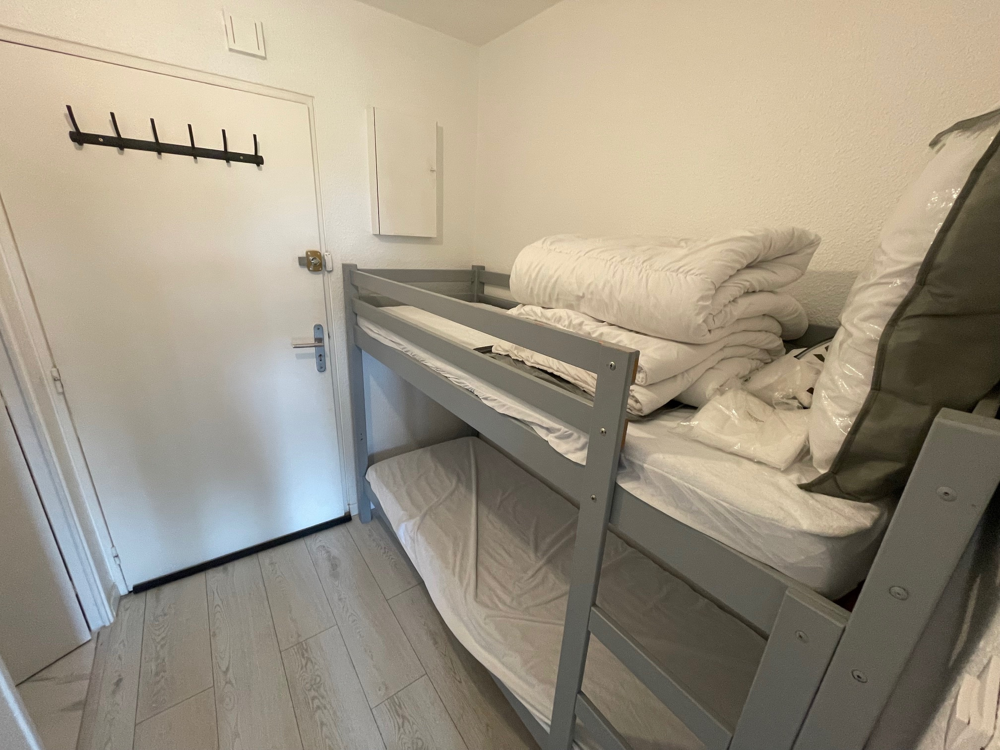 Port Olonna, à 2 pas des commerces et du cinéma, beau studio cabine en parfait état, refait avec goût et situé au 3e et dernier étage avec ascenseur comprenant : entrée cabine (2 lits superposés), séjour avec cuisine us équipée (plaque + hotte + four + lave-vaisselle + frigo), salle de douche avec wc et balcon. Idéal pied à terre ou investissement locatif ! Charges mensuelles : 175 € environ. Coproriété de 30 lots, pas de procédure en cours.