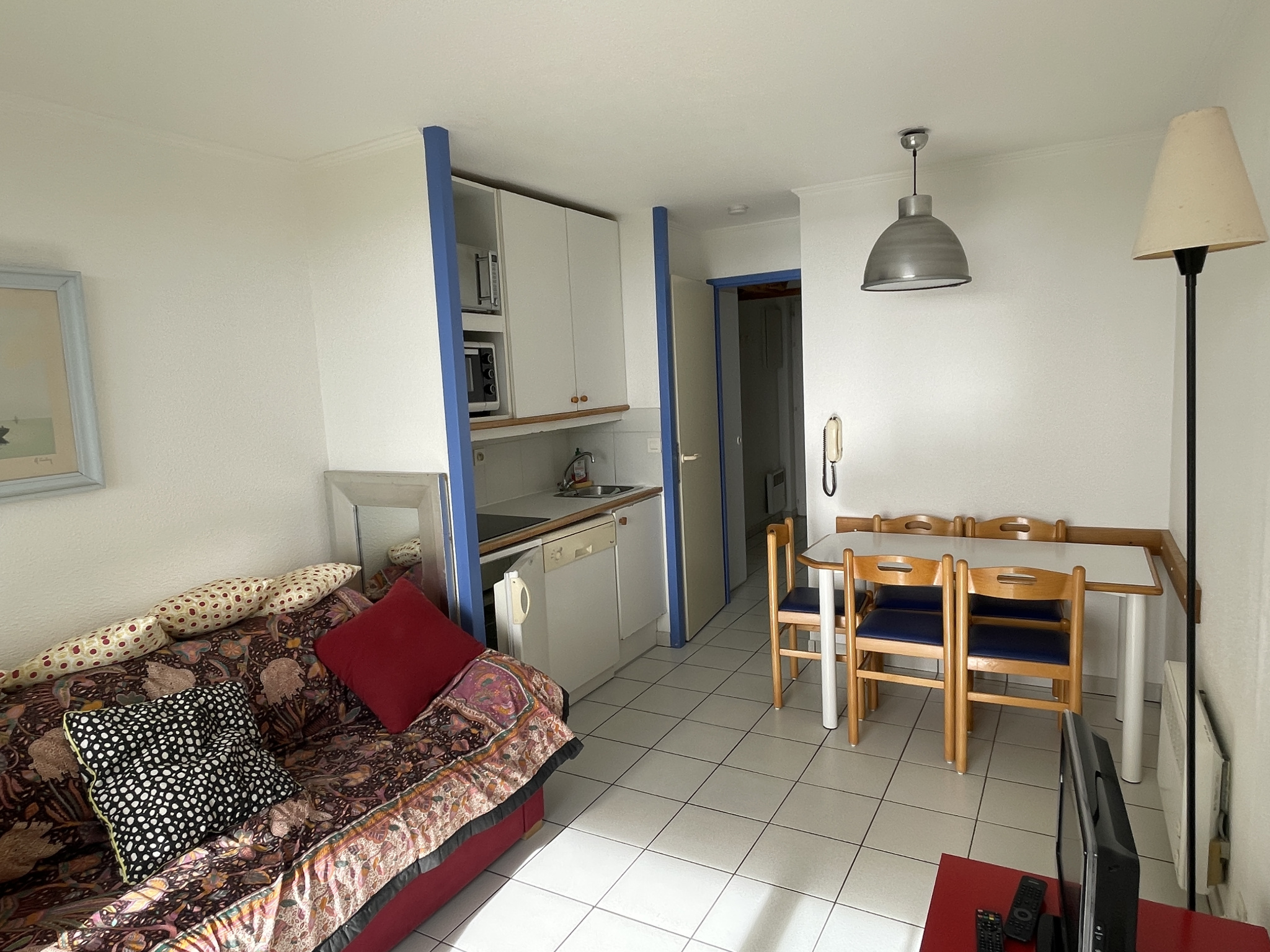 Exclusivité Agence des Pins Bourgenay. Studio vue mer port Bourgenay comprenant : entrée avec placard, chambre cabine, séjour-salon, cuisine équipée, salle de bains avec toilettes et terrasse exposée Sud. Vue exceptionnelle. Rare à la vente dans cette résidence, vendu meublé et équipé, accès aux différentes piscines du site. Disponible de suite, libre de toute location et occupation.