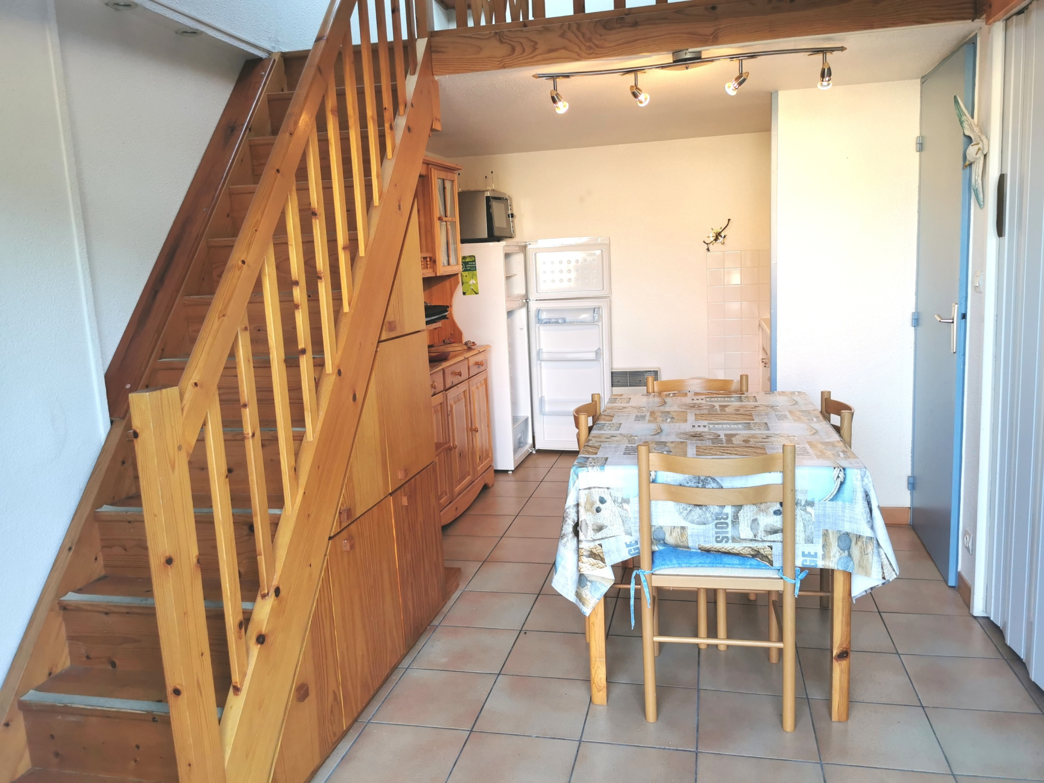Elle ce compose, d'un séjour avec coin cuisine, une chambre, une salle d'eau, un w-c séparé et à l'étage une mezzanine.