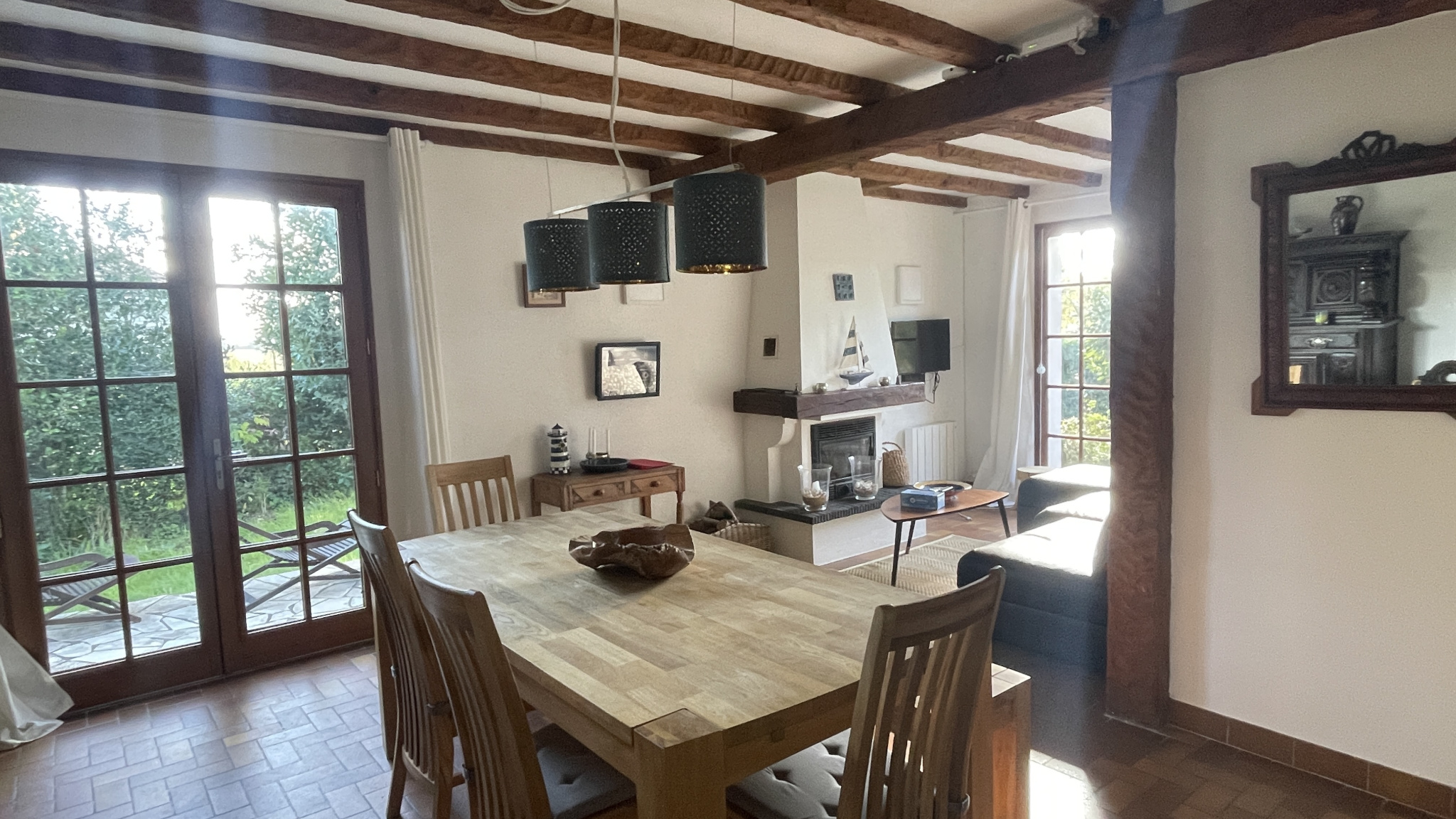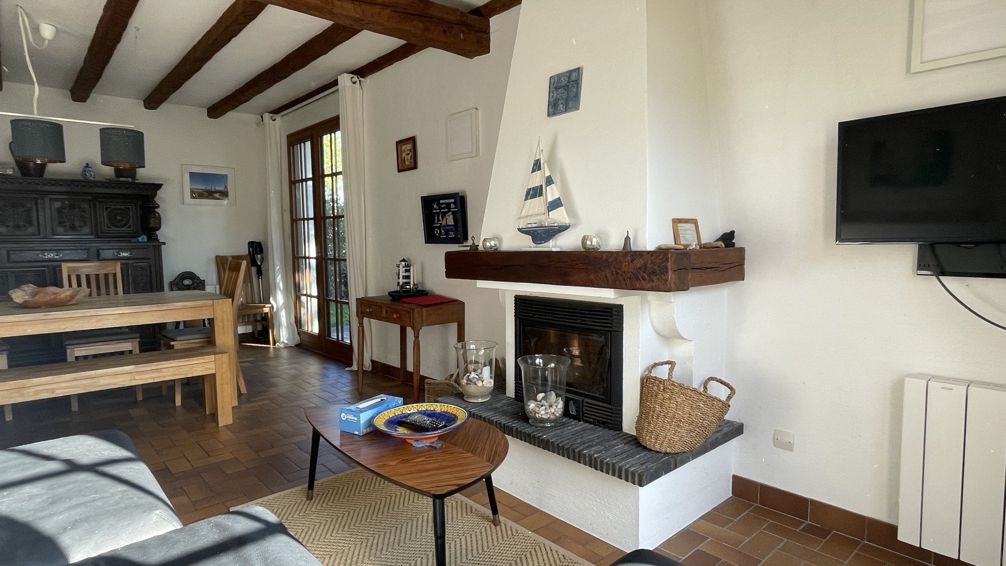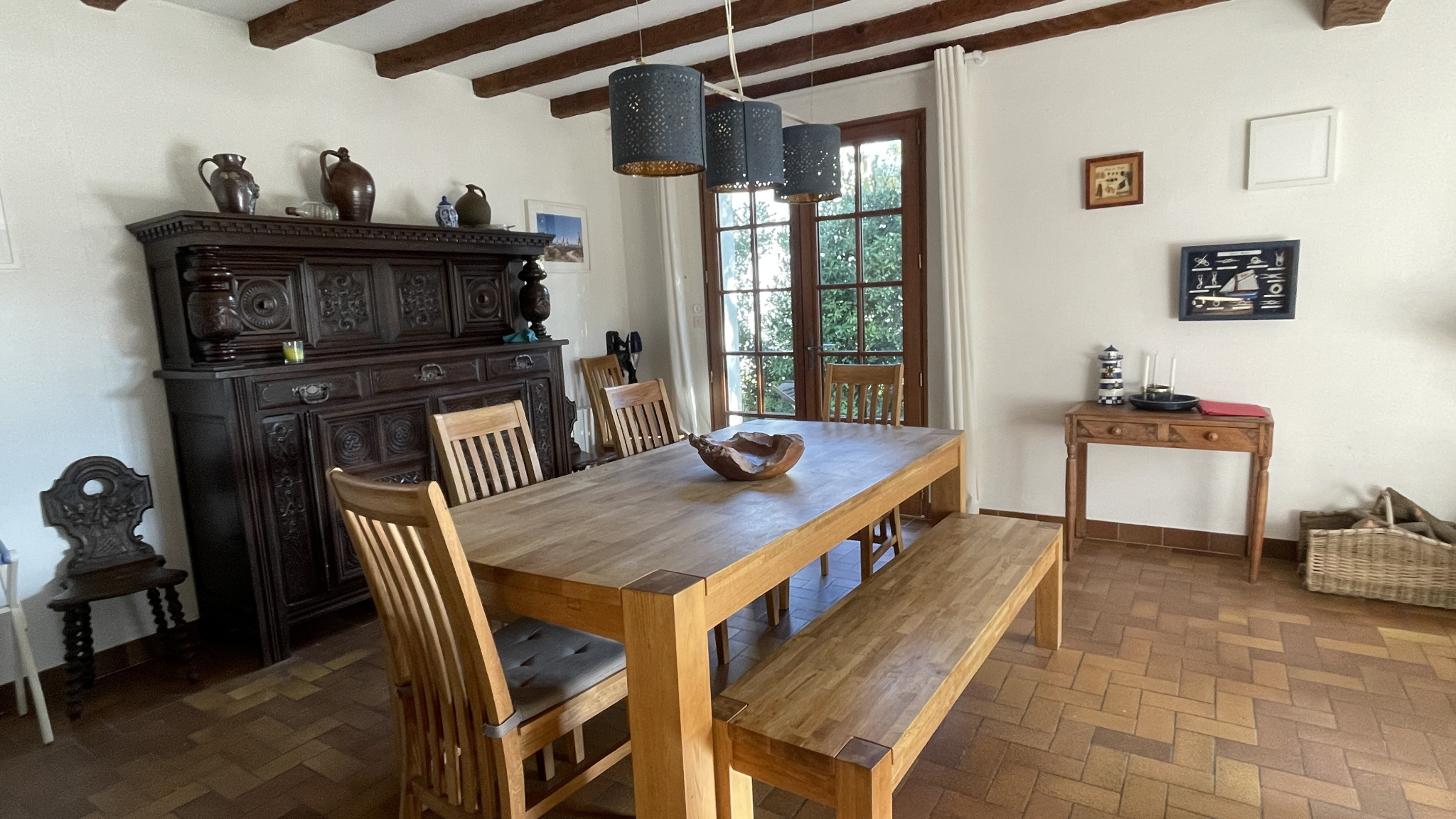 BOURGENAY. Plage du Veillon à pied. Maison à rafraîchir comprenant : séjour-salon avec cheminée insert, cuisine aménagée et équipée, dégagement, 2 salles d'eau, 2 toilettes, 3 chambres et garage. L'ensemble édifié sur belle parcelle close et arborée d'environ 700 m2. Emplacement de 1er choix, au calme, beau potentiel et possibilité d'extention. Rare sur le secteur.